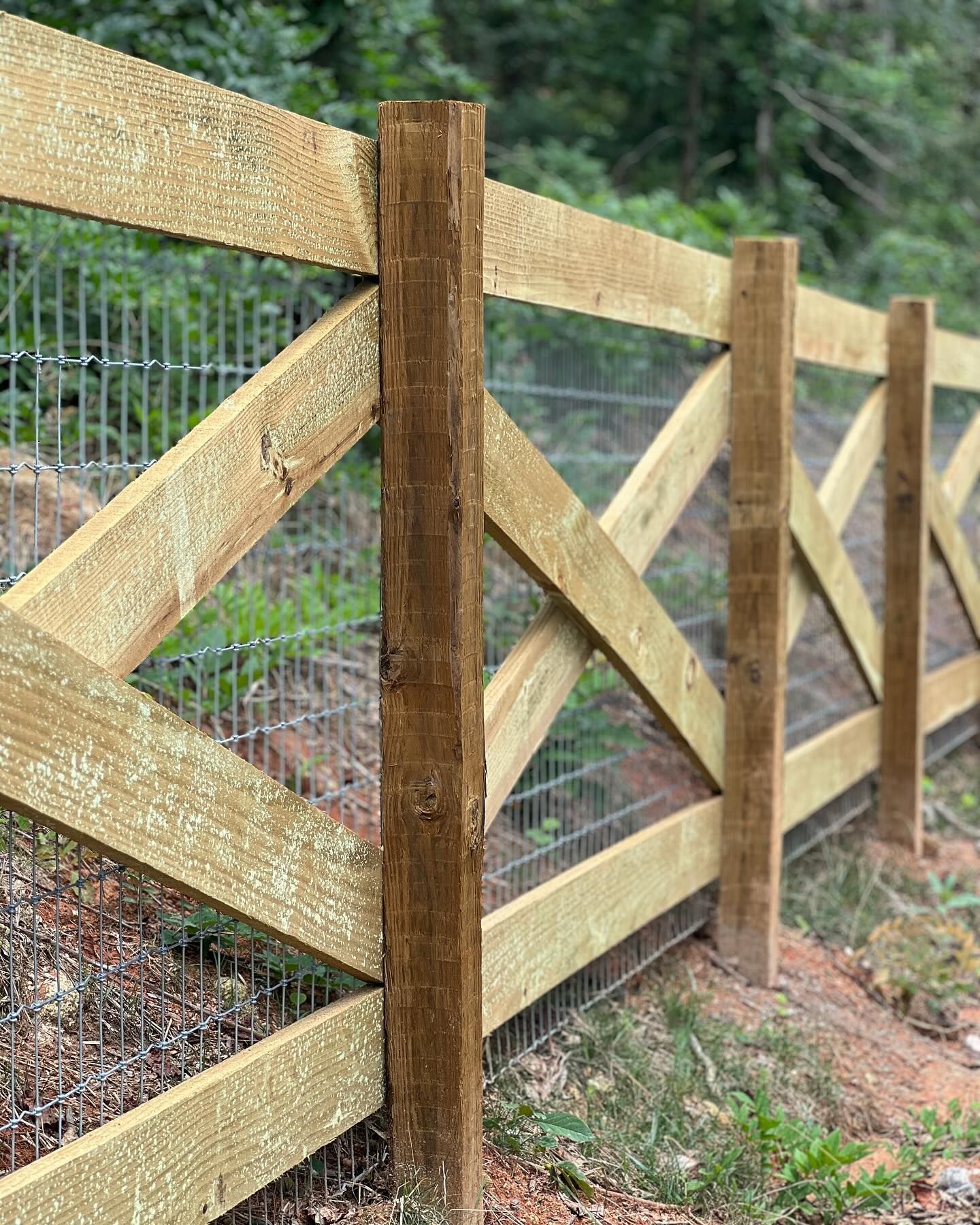 - Heavy-duty wire mesh mounted on t-posts or 4x4 posts